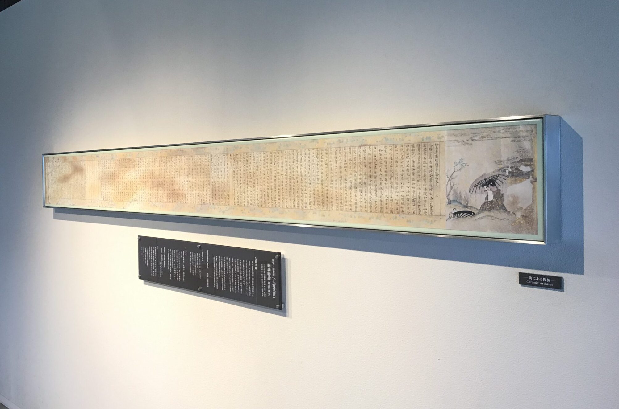 1階の展示エリアでは、日本武尊の伝承をはじめとする日本平の歴史や、地形の成り立ちなどを紹介するとともに、法華経(久能寺経)の一部複製が展示されています。金銀の切箔を施した装飾経は、平安王朝末期の貴族の美意識を今に伝えます。