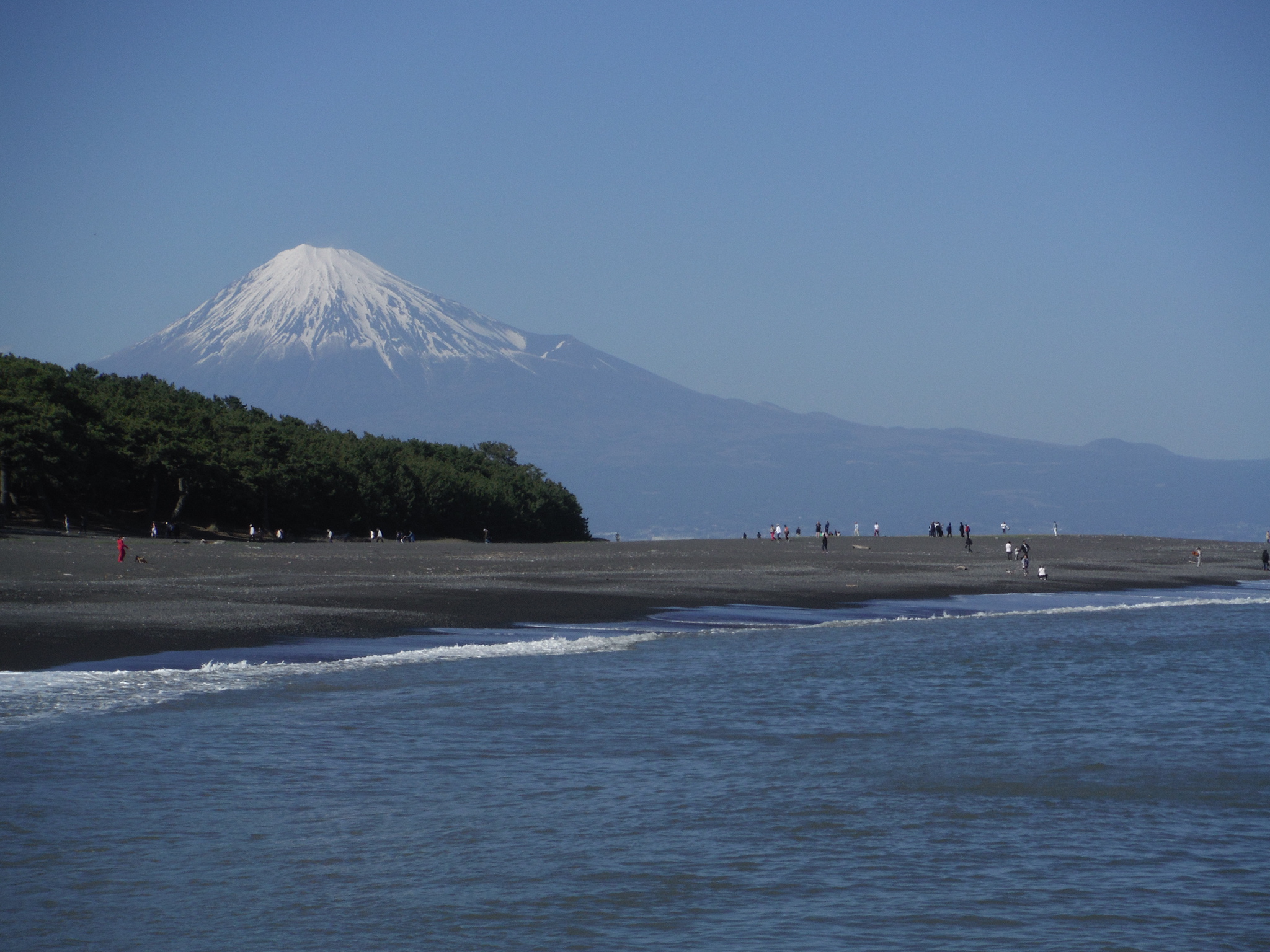 砂嘴に寄る波と松越しの富士山が織り成す白砂青松の絶景は、浮世絵のモデルにもなっています。
