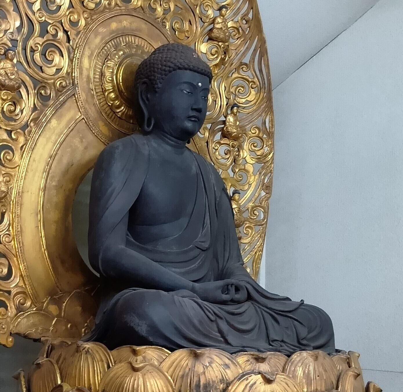 本尊は、慶派の仏師である実慶が製作した大日如来坐像[国指定彫刻]です。像内から、承元4年(1210)と実慶作の墨書銘が確認されました。男性的な面貌や肉付きよい体型などが表現されています。