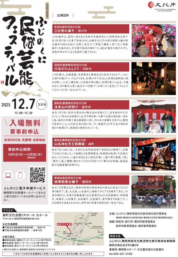 主催:ふじのくに無形民俗文化財活性化実行委員会(静岡県・静岡県文化財保存協会・静岡県文化財団・静岡県観光協会)