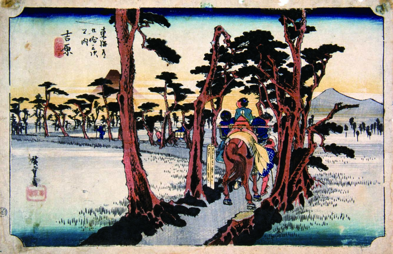 - 駿河湾の北に広がる浮島ヶ原では、内陸に移転した吉原宿により、西へ旅しながら富士山を左手に望む「左富士」の名所が生まれた。ここでは、昭和30年代まで船も交通手段であった。